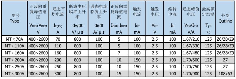 注:型號欄中MTχ表示MTG、MTY中任一種。