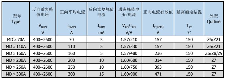 注:型號欄中MDχ表示MDG、MDY中任一種。